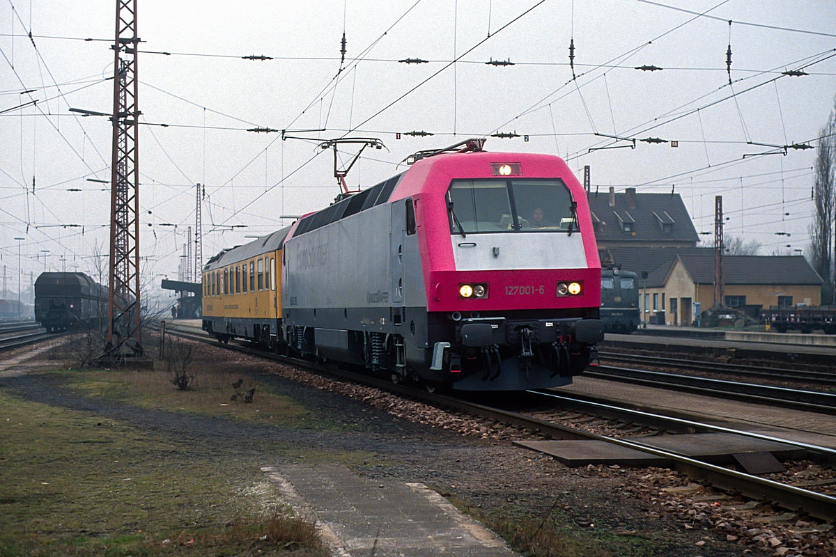 Vorheriges Bild | Zurück zur Übersichtsseite | Nächstes Bild Am 4. Februar 1993 wurden Messfahrten mit dem Eurosprinter 127 001 durchgeführt Der Zug hat Dillingen erreicht
