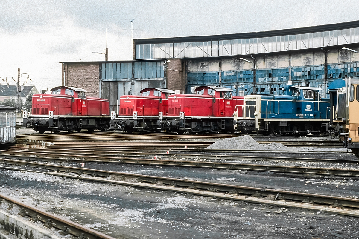 Vorheriges Bild | Zurück zur Übersichtsseite | Nächstes Bild 290 025, 290 051, 290 024 und 260 390 vor dem bereits aufgegebenen Lokschuppen des Bw Dillingen