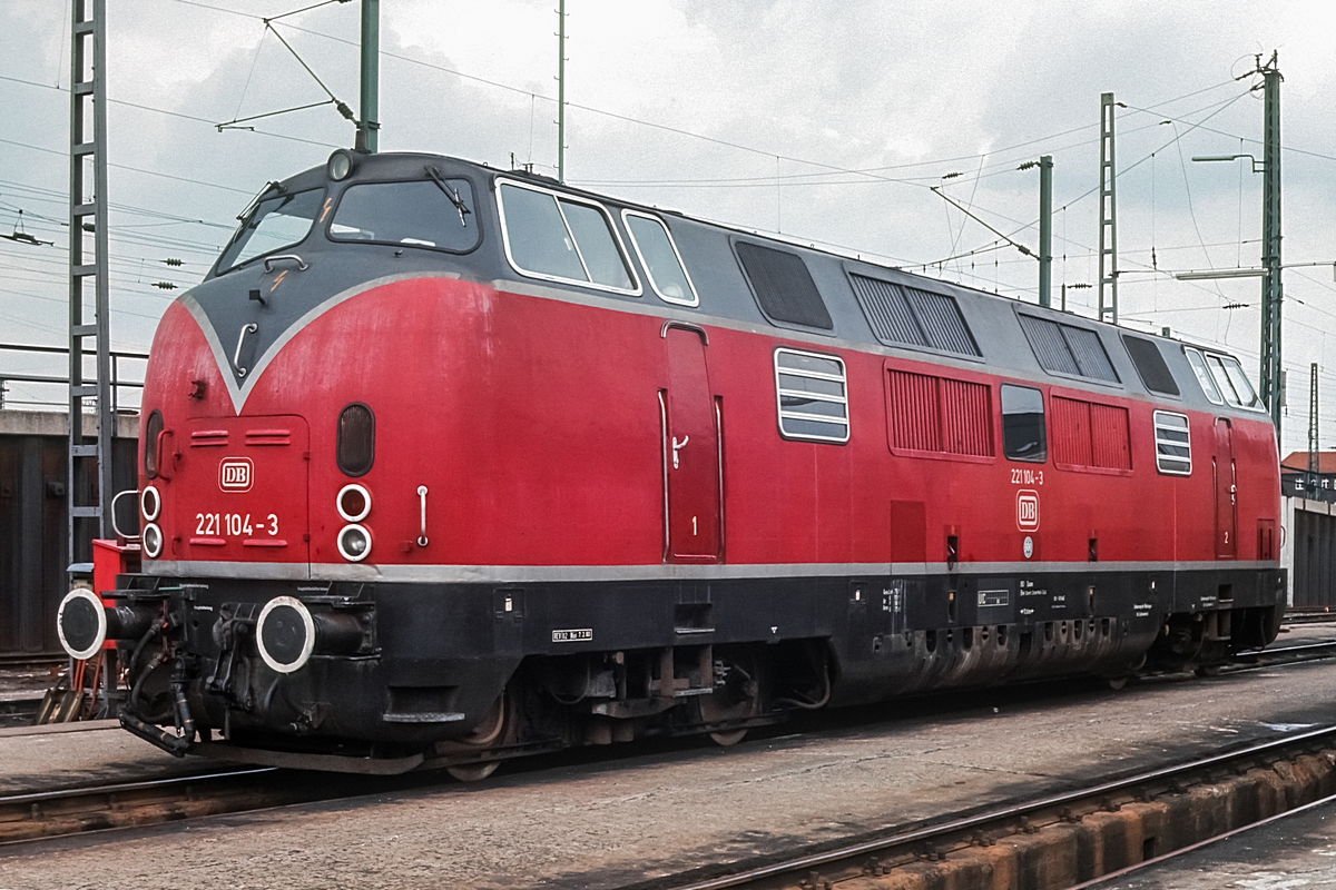 Vorheriges Bild | Zurück zur Übersichtsseite | Nächstes Bild Auch die 221 104 wartete im Bw Wanne-Eickel auf neue Aufgaben